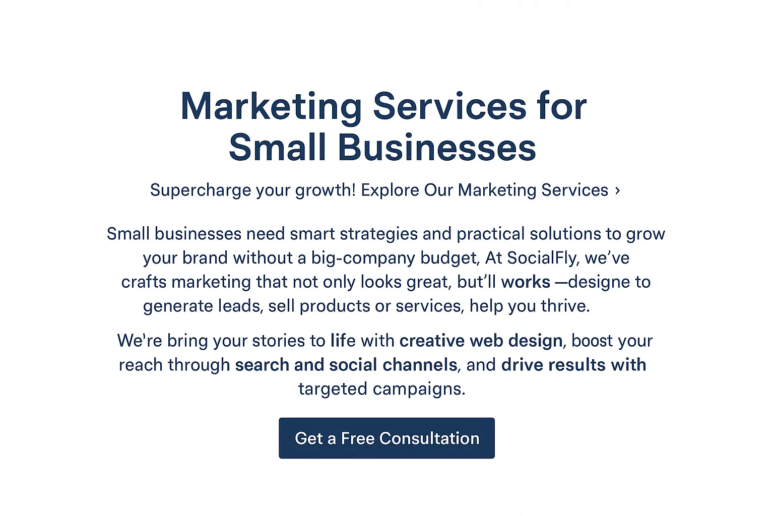 Marketing Services for Small Businesses like yours are designed to help you grow smarter, book more jobs, and build a trusted brand in your community. At SocialFly Marketing, we specialize in helping home service providers stand out in competitive markets — from HVAC and plumbing to landscaping, remodeling, construction, and beyond.
